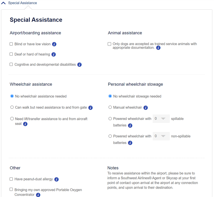 後はSpecial Assistanceが必要な方は項目クリックしましょう。