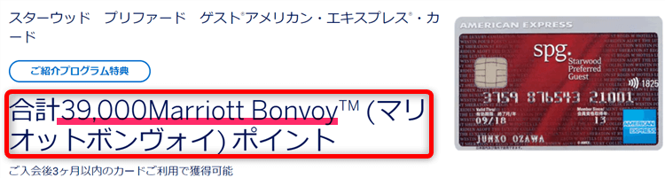 - SPGアメックス紹介の新規発行:39,000ポイント