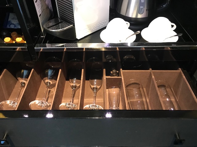 セントレジス大阪にチェックインした際に、ウェルカムドリンクを頂けるということでこちらで軽く一杯いただきました。