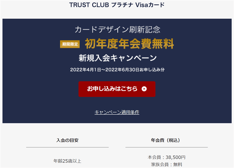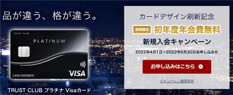TRUST CLUB プラチナ Visaカード年会費38,500円が初年度無料!強烈キャンペーン!!