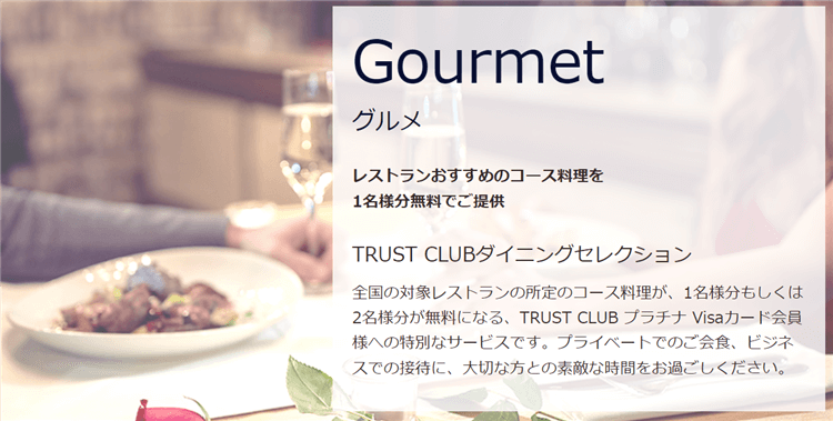 TRUST CLUB プラチナ Visaカードですがプラチナカードとして色々なベネフィットがあります。