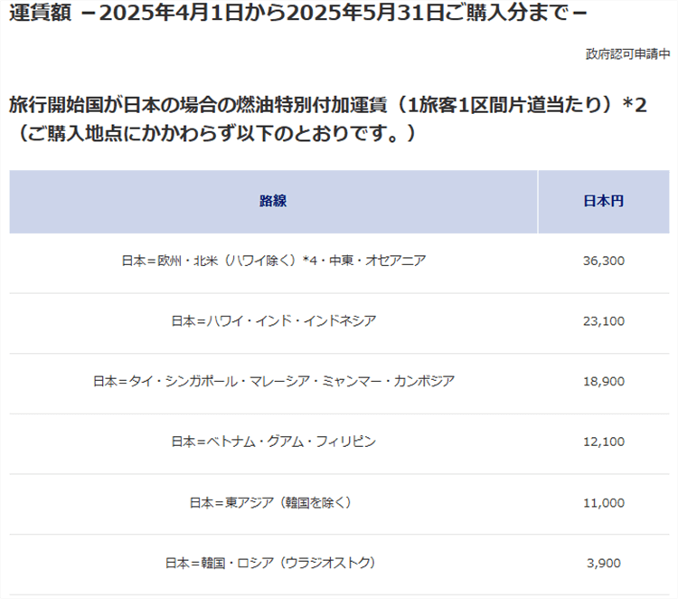 - 最新の燃油サーチャージの料金、推移(随時更新)