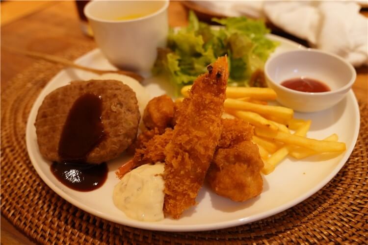 こちらは子供たちが頂いたキッズプレートですが、ハンバーグにフライ、ポテトや野菜と一通り子供たちが大好きなラインナップとなっていました!