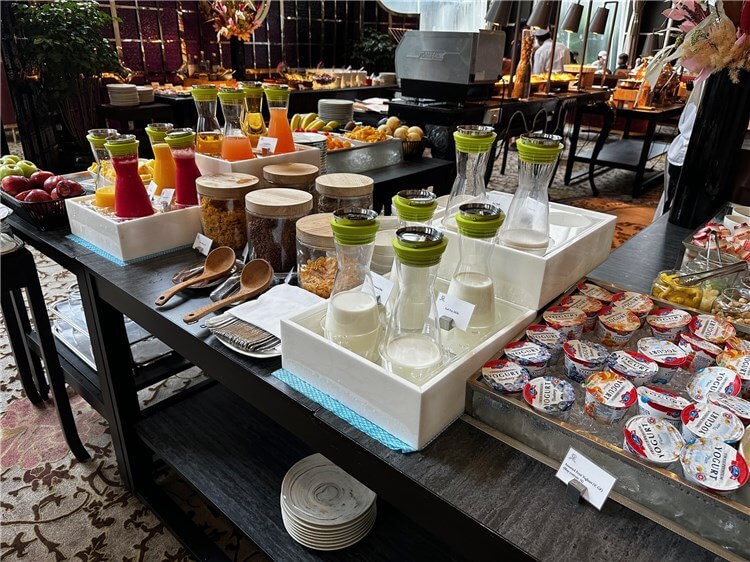 ヨーグルト類も豊富ですし、フレッシュジュース、シリアルも上品にセットされていますね!