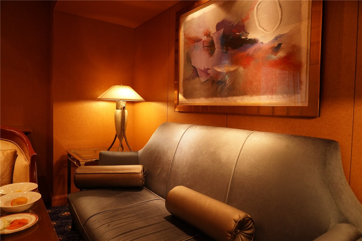 ラウンジ内の両端には大きなソファーがありこちらだとゆっくりとカクテルタイムを楽しむことが出来ますよ!