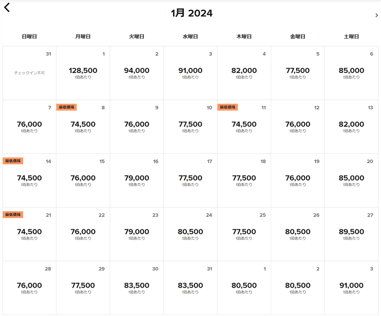 一番安い平日であれば、4万円中盤から宿泊が可能ですよ!