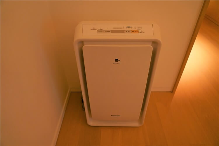 リビングに入った右手には存在感を消したかのような空気清浄機がありますよ!