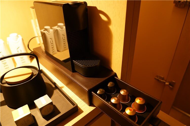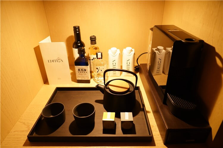 そしてコンパクトな中に、ジャパニーズジンをはじめネスプレッソ、ミネラルウォーターとフルセットされております。