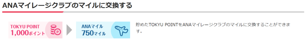 - TOKYU POINT1,000ポイント→750ANAマイル