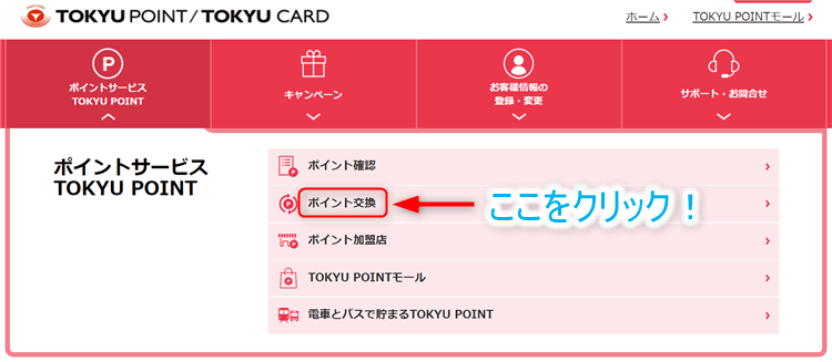 「ポイント交換」をクリックしてください。