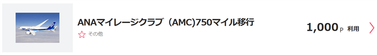 ポイント交換が出来る一覧が出てきますので、「ANAマイレージクラブ(AMC)750マイル移行」の項目をクリックしてください。