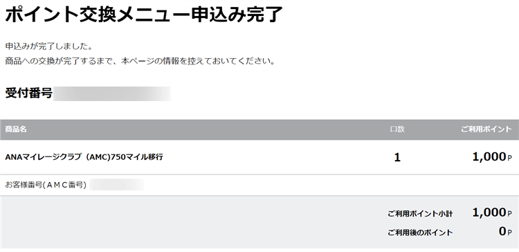 これで無事にTOKYUポイントがANAマイルに交換申込みが完了です。