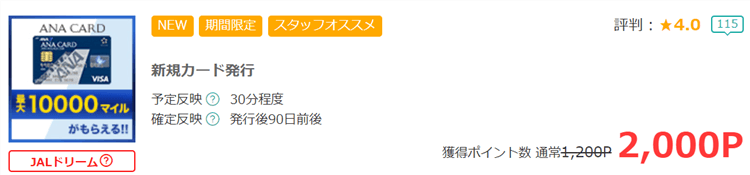 - 更新時に1,000ANAマイルが貰える