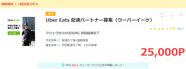 実は当ブログでも度々Uber Eats(ウーバーイーツ) を紹介していますが、今回過去最大級に報酬が高いんです!!