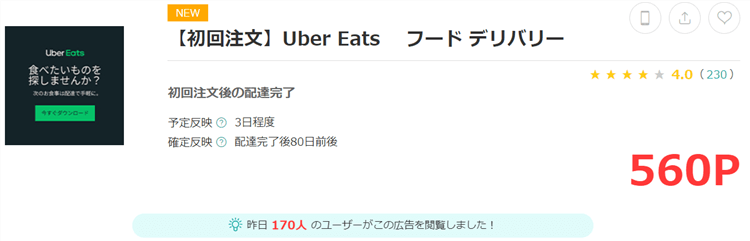 モッピー経由で「Uber Eats フード デリバリー」のクーポンが発行できます。
