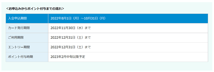 そして9月中にカード発行を済ませて、エントリー期間は12月31日までとなります。