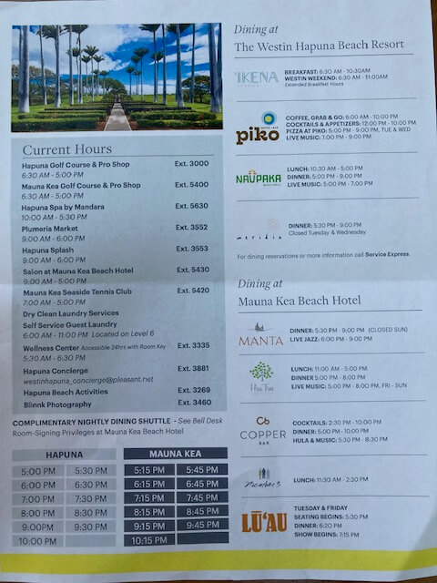 実はウェスティンハプナビーチリゾートとマウナケアビーチホテルはお互いに提携してるホテルという事で、送迎シャトルバスが定期的に運行されているんです。