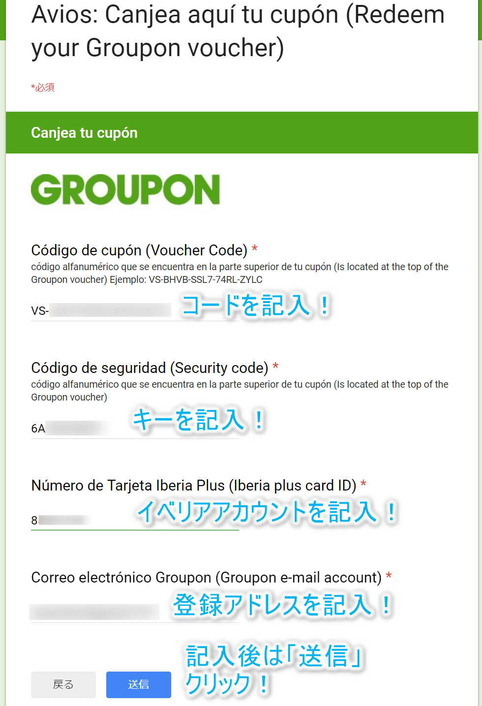 グルーポンからイベリアに登録する方法が変わっていますので追記しました。